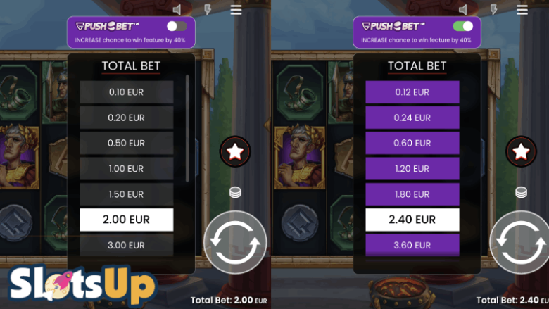 With this slot game you also have an option to activate the Push Bet feature which raises your bet and increases chances to trigger features in 40%. You can also find the Push Bet feature in the Razor Returns online slot game.