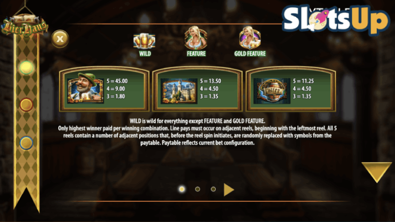 Bier Haus slot machine, with its vibrant German-themed imagery, offers intriguing gameplay and mechanics. The slot boasts a variety of symbols, including the jovial German man, beer (scatter) symbols, and accordions. Notably, it features two types of scatters—normal and Gold, both represented by the barmaid symbol, which trigger distinct features. For players seeking a diverse range of gaming options, Bier Haus presents an excellent opportunity to explore the world of free casino slots, combining the excitement of casino gameplay with the freedom of playing slots for free.