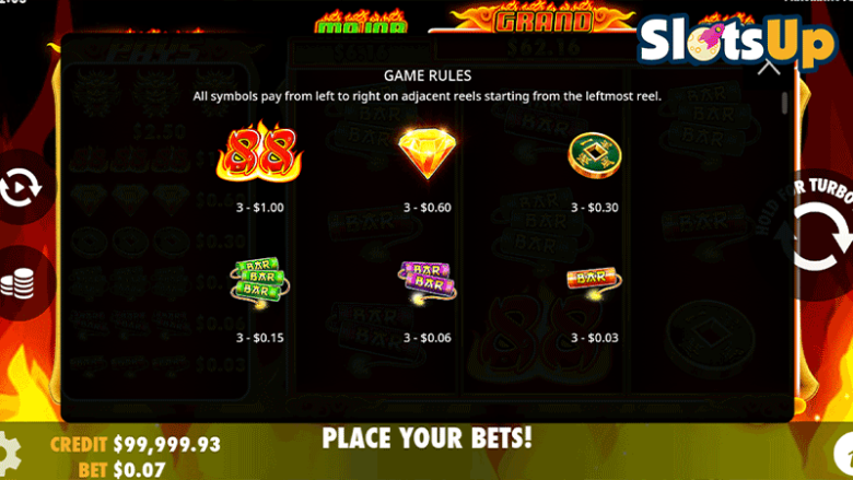Bets in Fire 88 range from $0.07 up to $35 per spin, which means that it will suit every wallet.