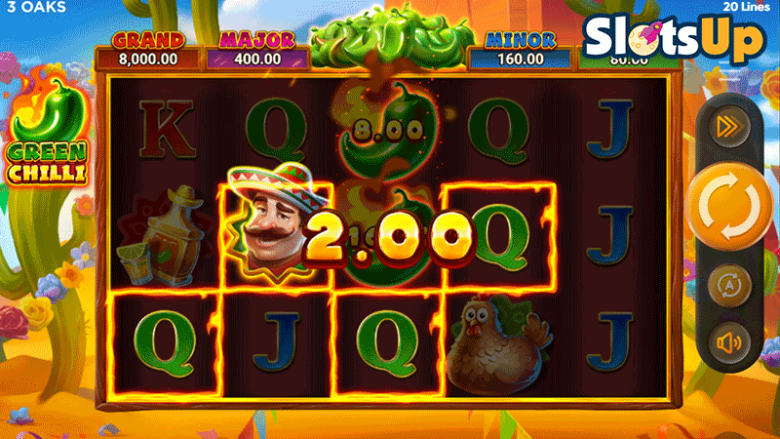You only need 0.2 to 30 coins to dive into the game’s features, including the Additional Free Spins and Bonus Games, and enjoy a high RTP of 96.65%. Experience the heat and play Green Chilli for free in demo mode today. You don’t need any deposit, registration, or downloading of the game, even on your smartphone!