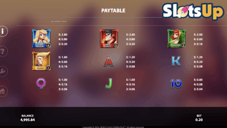 Prize combinations in the Hero Clash demo consist of three, four, or five identical pictures. They must be located continuously. The more icons there are, the higher the payout. The mechanics of counting is from right to left. You receive a big win for the highest combination of five portraits of a blonde. The maximum bet is 700 coins.