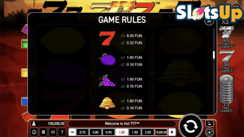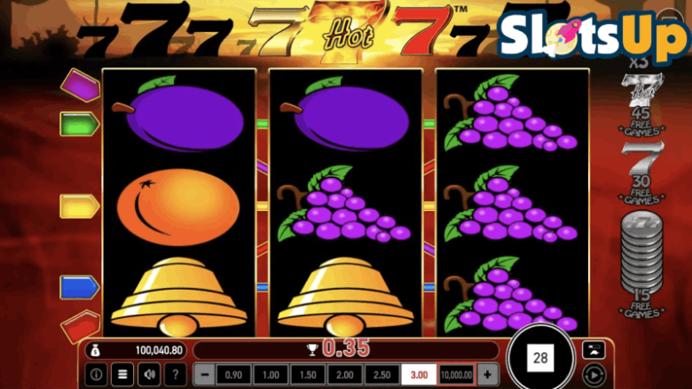 Hot Seven Bonus — the Hot Seven Bonus makes Hot 777 even more exciting. Players receive an astounding 45 free spins and a 3x prize multiplier thanks to this bonus.