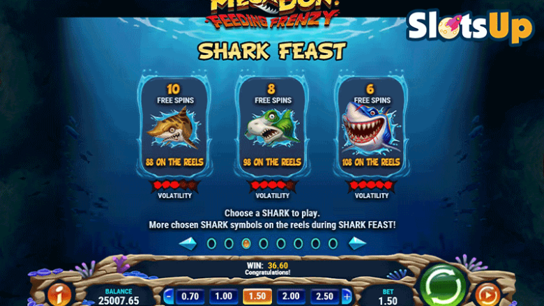 Mega Dons: By choosing 108 Mega Dons in 6 free spins, you get the maximum Mega Don: Feeding Frenzy volatility of 5/5.