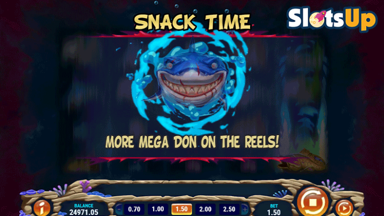 While the design and graphics in Mega Don: Feeding Frenzy aren’t exactly eye candy, the Play’n GO quality is surely there. The game is set against a backdrop of a deep ocean, creating a feeling of immersion. The Mega Don giant white shark rules the depths and serves as the main attraction of the slot.