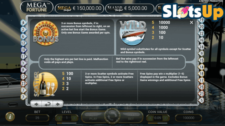 Below are some of the key stats to help you understand the win potential in the Mega Fortune slot: