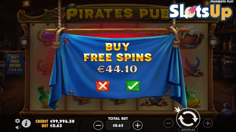 There is only one feature in the Pirates Pub slot game — the free spins round split into two stages. You also have an opportunity to buy a bonus round for 70x your bet.