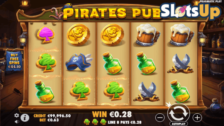 I wanted to test my sea legs and jump into the free Pirates Pub slot adventure. I set the autoplay button on 50 spins and enjoyed the pirate atmosphere of this meticulously crafted creation by Pragmatic Play.