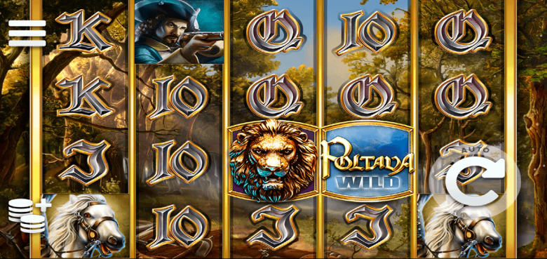 Poltava Flames of War casino slot game introduces the Marching Reels feature, a key element in achieving victory and claiming great winnings. Wage war against the enemy using infantry, artillery, and cavalry. When symbols representing one of these combatant branches appear on all four positions of a reel (excluding the Wild symbol), the Marching Reels feature is activated, granting you a re-spin. If identical symbols appear on the right side of the triggering reel, you earn additional re-spins, and the troops advance one step to the right. The reel with the higher-value combatant branch can replace all combat arms. Symbols of the combatant branch that appear on the left behind the frontline become part of the formation.