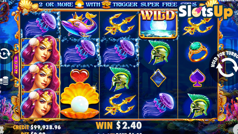 Queen of Atlantis is a video slot game from Pragmatic Play with a 5x4 layout and an impressive 1,024 possible ways to win. The game is themed around the Queen of Atlantis herself, set against the backdrop of deep blue waters, where she is surrounded by treasures, pearls, and sea creatures. This turns a classic slot into an interesting combination of special features: wilds, scatters, and free spins. All of these are connected with making a big win for you in the game.