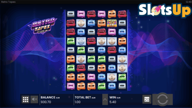 A bit boring and not lucrative. These are my impressions from making 100 spins in a free Retro Tapes slot. From the $1000 initial balance, I could keep $941 by the end of my gambling session. Nothing interesting happen until the 85th try. My wins were small (around $0.2 - $0.6, and a pair of 1-5 dollars). Only by the end of my test, I could benefit from Wild Multipliers and cascading wins which brought me $16 profit. Unfortunately, this fact didn’t save my situation.