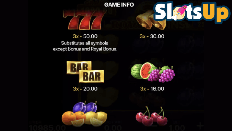 Royal Bonus. In my opinion, this feature works as a multiplier, but it is triggered only on the second reel. It simply collects all available wins (if any) and sums them up as the final jackpot.
