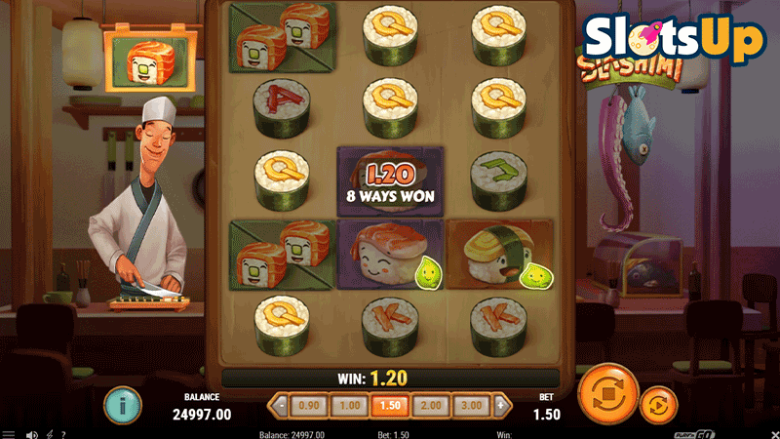 Play'n GO's Slashimi is a raw fish-filled game featuring a sushi chef that boosts the chances of winning to some extent.