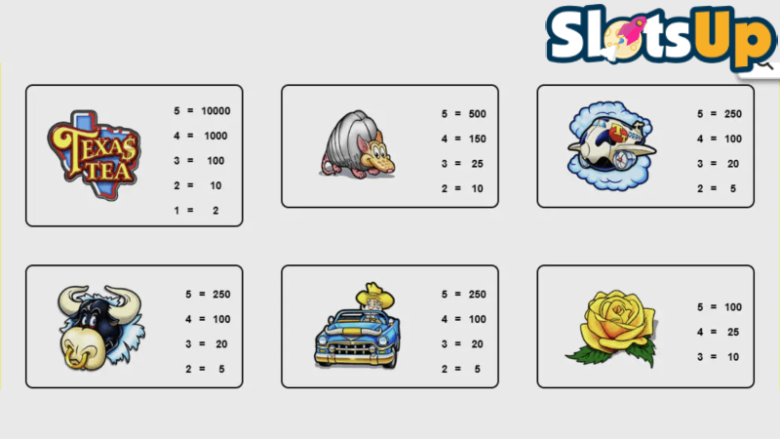 If you haven't figured it out yet, Texas Tea isn't about tea. It's about oil in Texas. The entire design of the game is built around this, from the design of the symbols (cacti, armadillos, oil rigs) to the bonus features. Overall, even today, the game looks pretty good. There are no mindblowing graphics, but the animations and overall picture are good (in 2005, something booming).