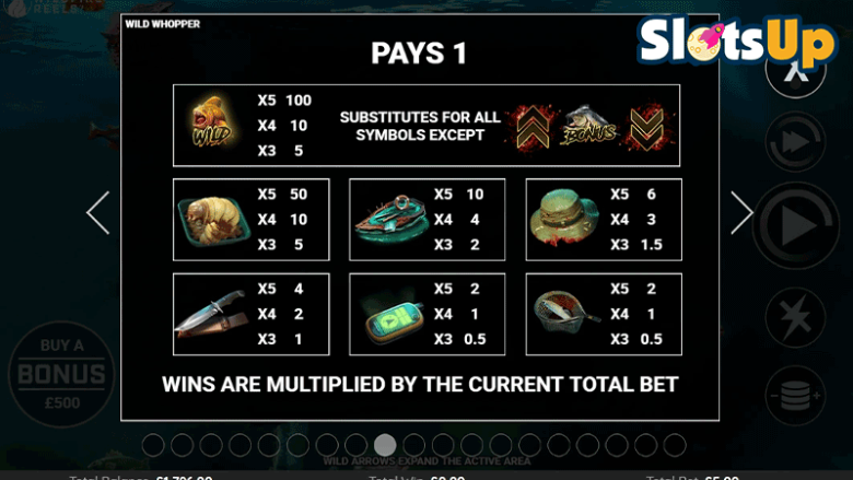 Playing the Wild Whopper slot machine takes you on an underwater adventure. Cool blue seas surround the gaming board as schools of fish dart across the screen. Adding to the air of intrigue and mystery is the massive octopus that lurks in the backdrop.