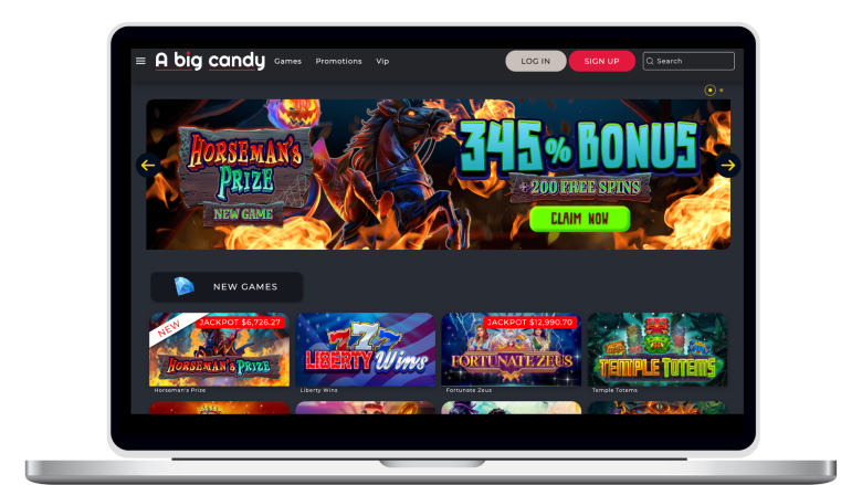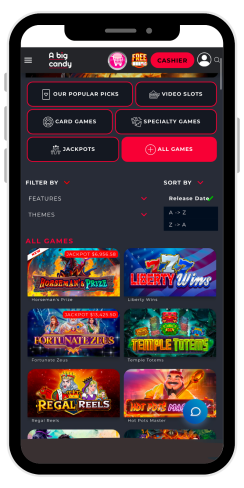 A Big Candy has 100 casino games, with 5 types from 2 providers. 2 of these are available to players in USA.