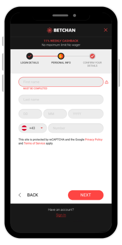To visit Betchan, you must be at least 18, as required by law in USA and by Betchan terms