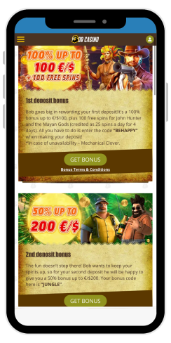 The casino does not offer Bob Casino no deposit bonuses. So if you are specifically looking for this type of offer, check our list of casinos with no deposit bonuses.