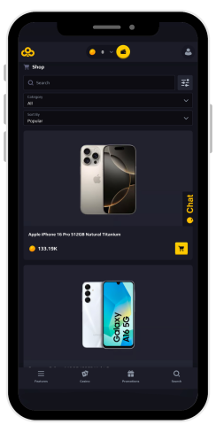 A unique Shop with real physical prizes — phones, consoles, laptops, accessories, and more. This is a rare feature for online casinos.