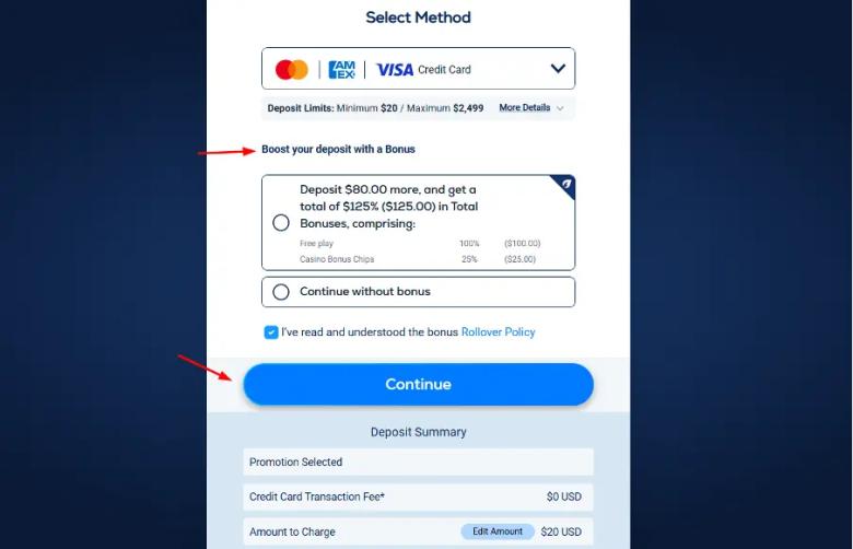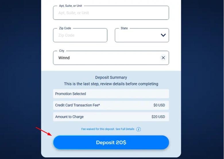 Enter an amount to deposit within the specified limits (usually, from $20). Optionally, you can add a promo code.
