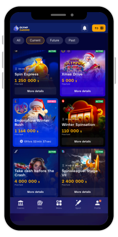 While gathering information for this Olymp casino review, I found a large section dedicated to tournaments. It is divided into Current, Future, and Past. At any given time, around 10 tournaments are running simultaneously.