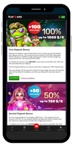 Yes, the Playamo casino has an app. It can be installed via a browser or on a mobile device. At the same time, for iPhone users there is no separate app, but an option to add the site to the home screen. This is just as convenient as an app. By the way, players can get a no-deposit bonus for installing it.